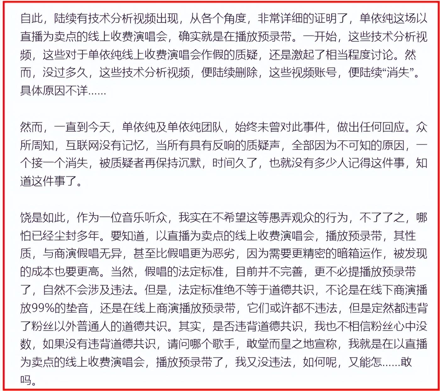 此外,單依純還被扒出在線上演唱會上用預錄帶欺騙觀衆。