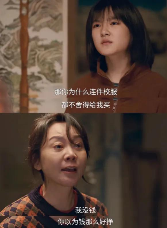 捨不得給女兒買新校服,卻願意花錢給兒子買百科全書,平日裏精打細算,一碗打滷麪的滷子母女三人分着喫,拍黃瓜就算是改善伙食,碗裏僅有的肉末,也全都夾給兒子,自己捨不得嘗一口。