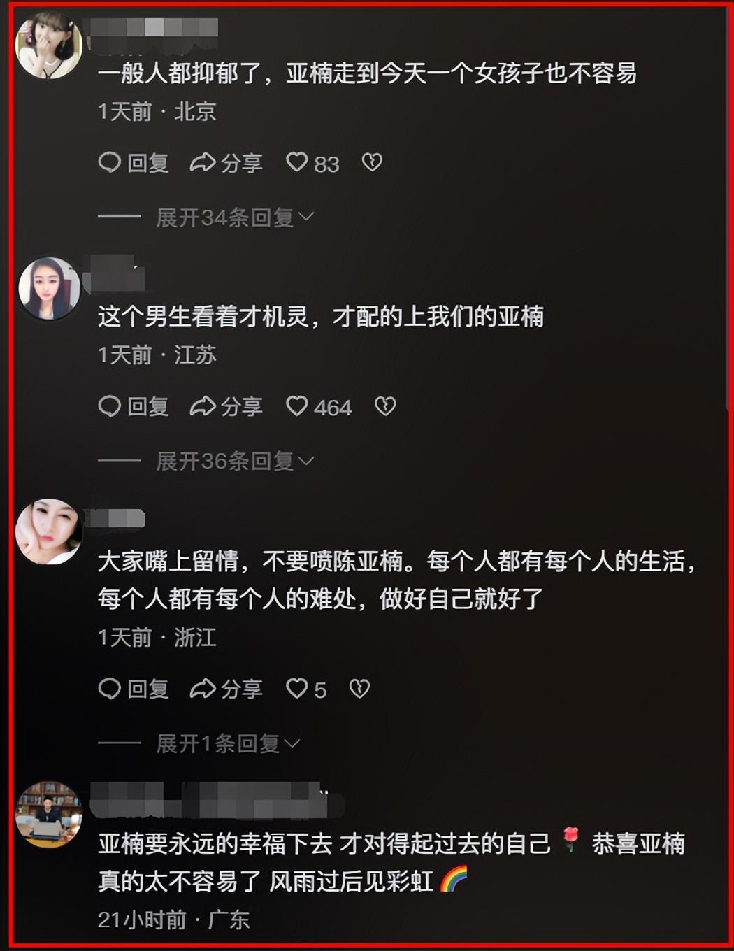 大家認爲陳亞男一路走來不容易,而且還曾經歷過網暴,希望她餘生幸福。