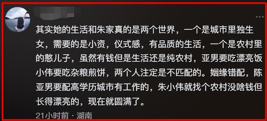 還有網友說陳亞男是個好女孩,只是和朱小偉不合適而已。