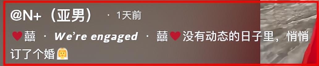 她發佈了一段視頻,並配文“沒有動態的日子裏,悄悄訂了一個婚”。