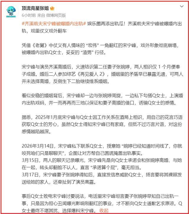 裏子面子都沒了!宋寧峯婚內出軌,妻子威脅第三者,評論區已淪陷