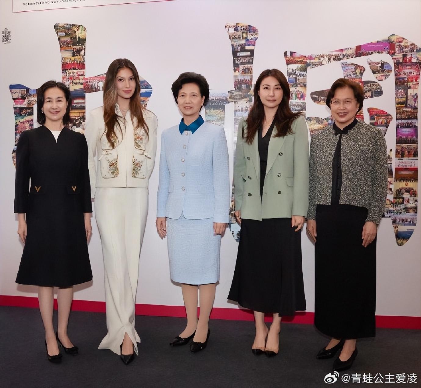 從合影中可以看到,這次參加論壇,何超瓊和郭晶晶的穿着打扮都很大氣、簡約。