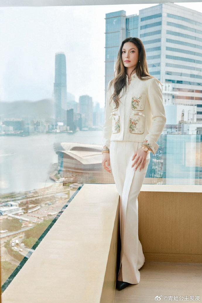 除了文字,她還曬出了多張照片。從照片中可以看到,她穿了小香風米白色套裝,整體優雅精緻又幹練大氣。