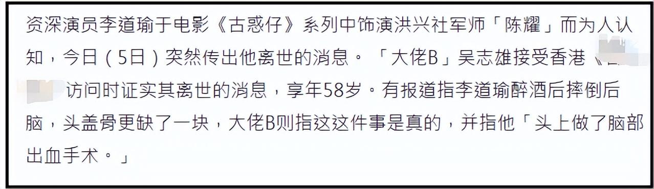 不過,4月5日,港媒就李道瑜去世一事求證了李道瑜的好友“大佬B”吳志雄,最終證實了噩耗。