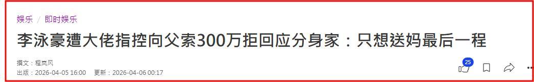 對於哥哥關於自己索要300萬港幣的爆料,李泳豪接受媒體採訪時直言“不回應了,只想送媽媽最後一程”。