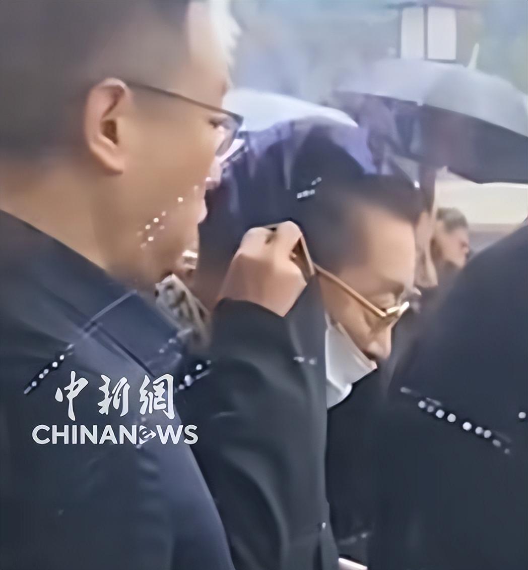 從曝光的視頻中可以看到,走出靈堂後,他哭成了淚人。