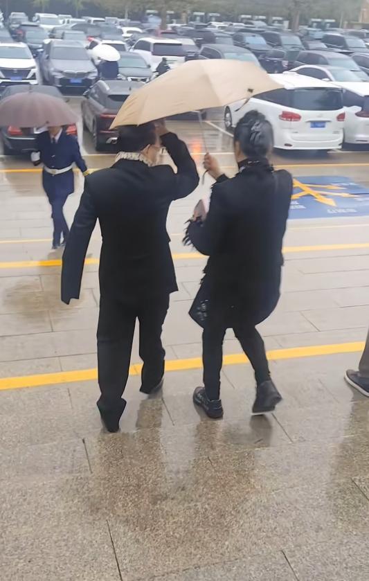 大家穿着黑衣、打着黑傘,有序排隊,等待追悼會正式開始。
