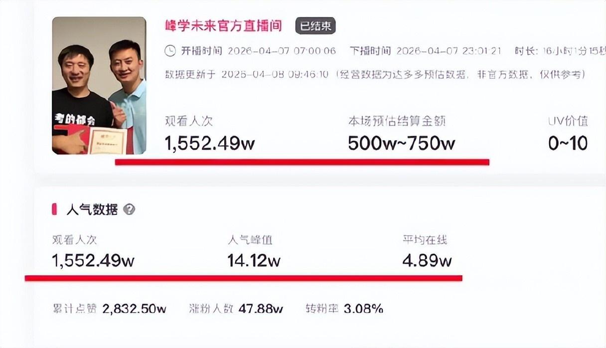 這樣的水平,不亞於張雪峯生前的直播銷售數據。