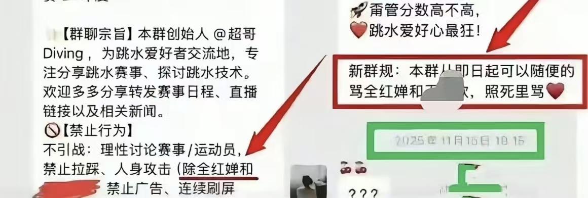 誰能想到,這樣的一個大羣的羣公告,寫着禁止拉踩、人身攻擊,但備註上卻寫着全紅嬋除外。