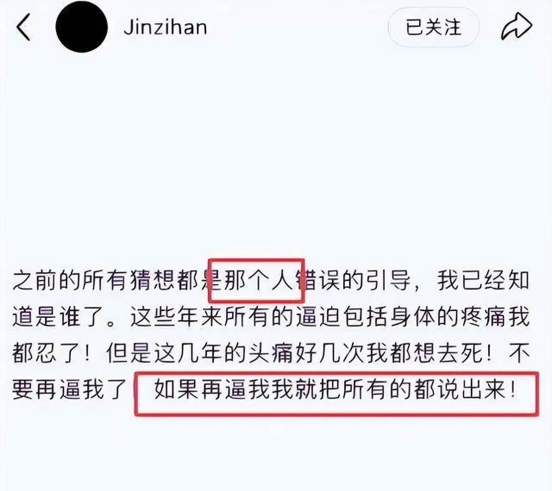 值得一提的是,即使到現在,金子涵還是沒敢爆出“她”的名字,她只留下了一句狠話:如果再逼我,我就把所有的(事情)都說出來!