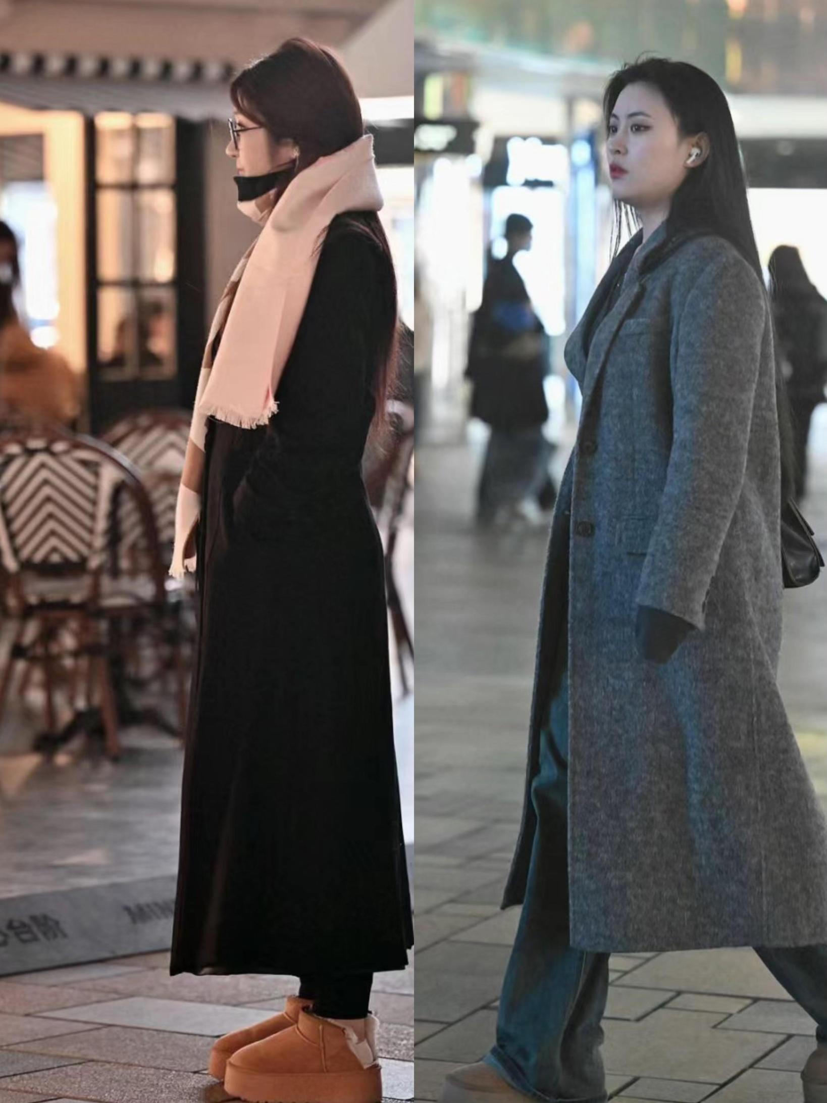 經典高級的黑色長大衣,我們可以配到小腿長度的款式。到小腿的長大衣,配一條加絨加厚的打底褲,顯得腳踝和小腿線條更纖細,搭配厚底的雪地靴也很保暖顯高。