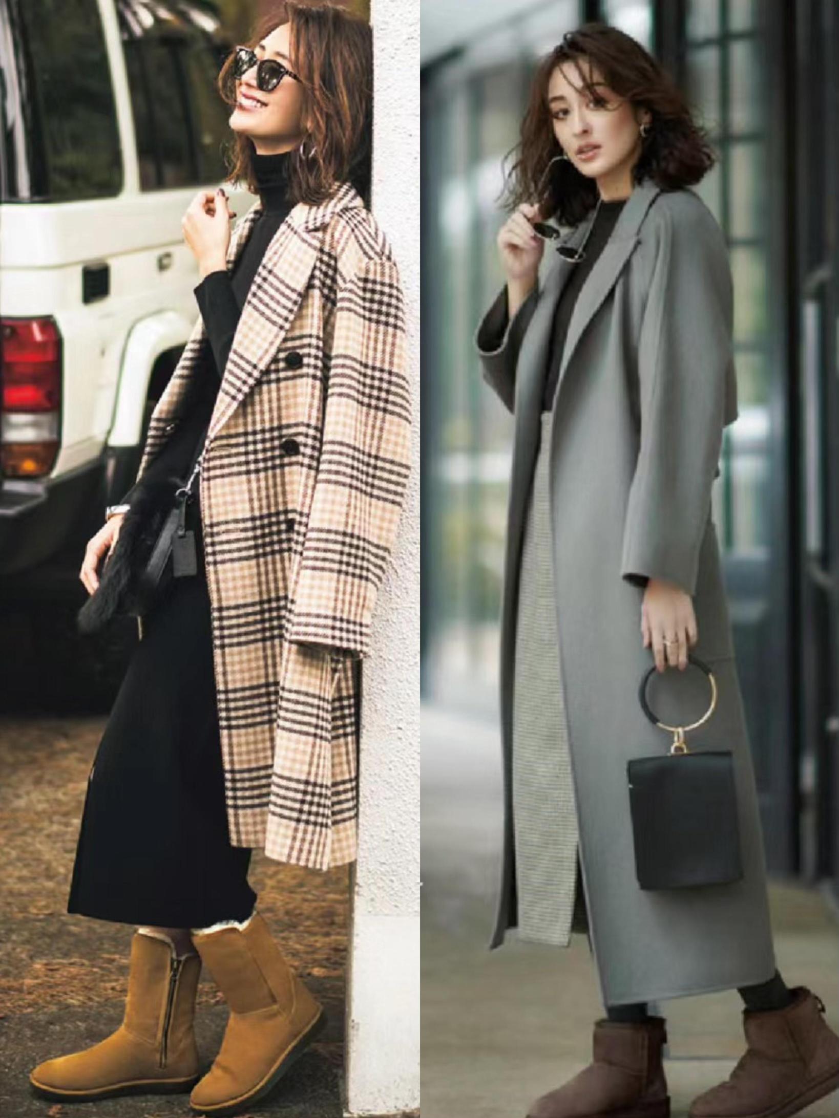 一種非常經典耐看且不挑人的穿着方式,這種搭配方式高級顯氣質、而且毫不費力。寒冷的冬天,裹一件到小腿長度的大衣,配一條加絨加厚的打底褲,踩一雙雪地靴也太溫暖了吧。