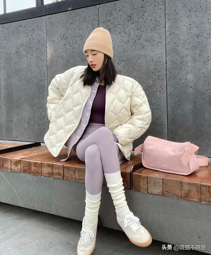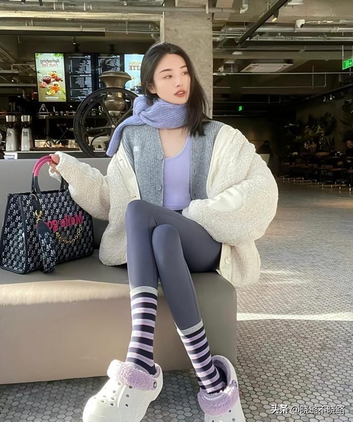 瑜伽褲的上半身裝扮好了,就將時尚點褲腳到下半身,襪子與瑜伽褲的穿搭是冬季的靈魂組合。腳踝粗,小腿直且贅肉少的女人,穿經典款式的緊身中筒襪。