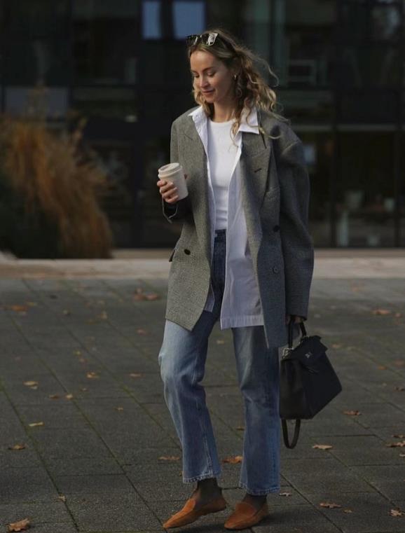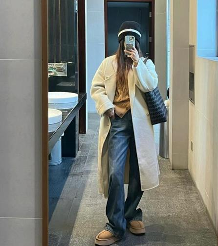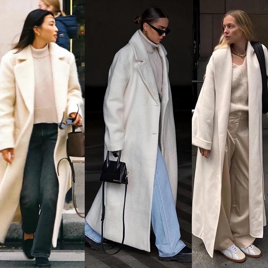 中長款的大衣,對於很多身材來說都是很友好的,哪怕是個矮的身材,也能輕鬆hold住。奶白色系,溫柔且百搭,搭配拖地的牛仔褲,梨形身材這麼穿顯瘦又保暖。