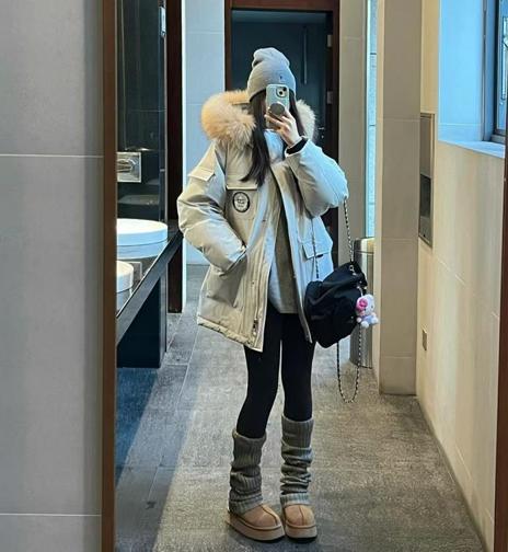 大冬天的,喜歡這種毛絨絨的外套,長度剛好到臀部位置,梨形的身材女生。在選擇下裝時,一定要選對了纔行。