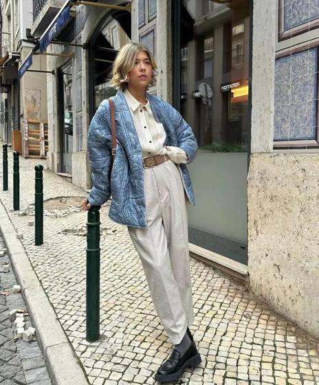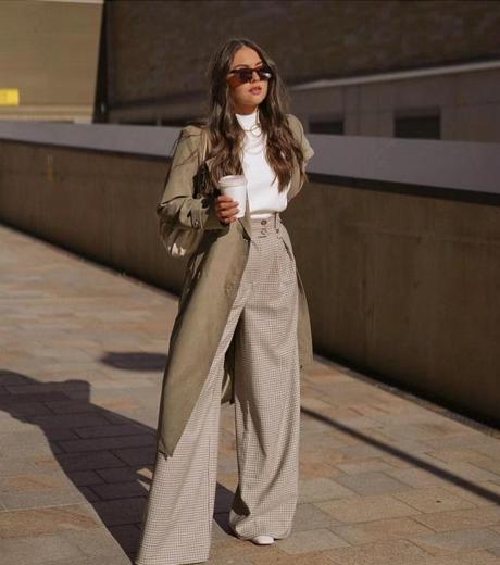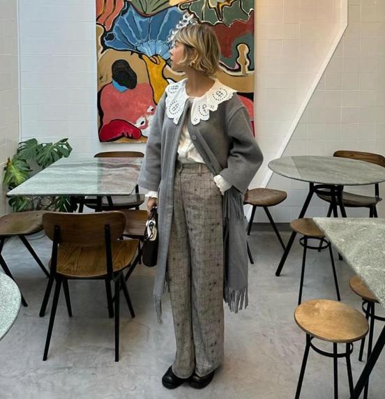 垂墜感和適中版型的長褲,能起到修飾下身比例的作用,顯瘦又延長腿部線條。