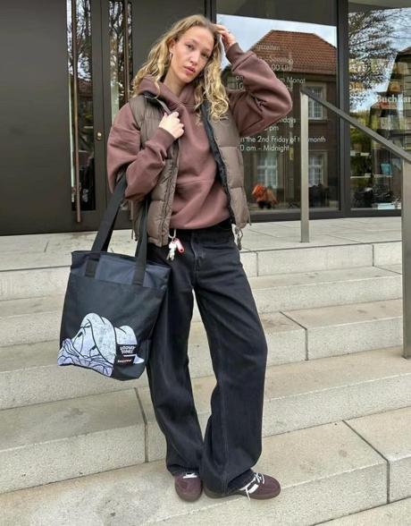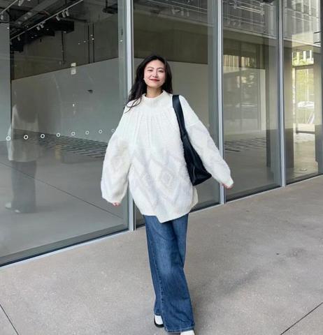 這一身慵懶隨性風的穿搭,光看着就非常喜歡了,白色寬鬆毛衣,下身搭配的牛仔褲也是寬鬆的版型,很舒適自在的穿法。梨形身材的姐妹們,果斷穿起來就對了。