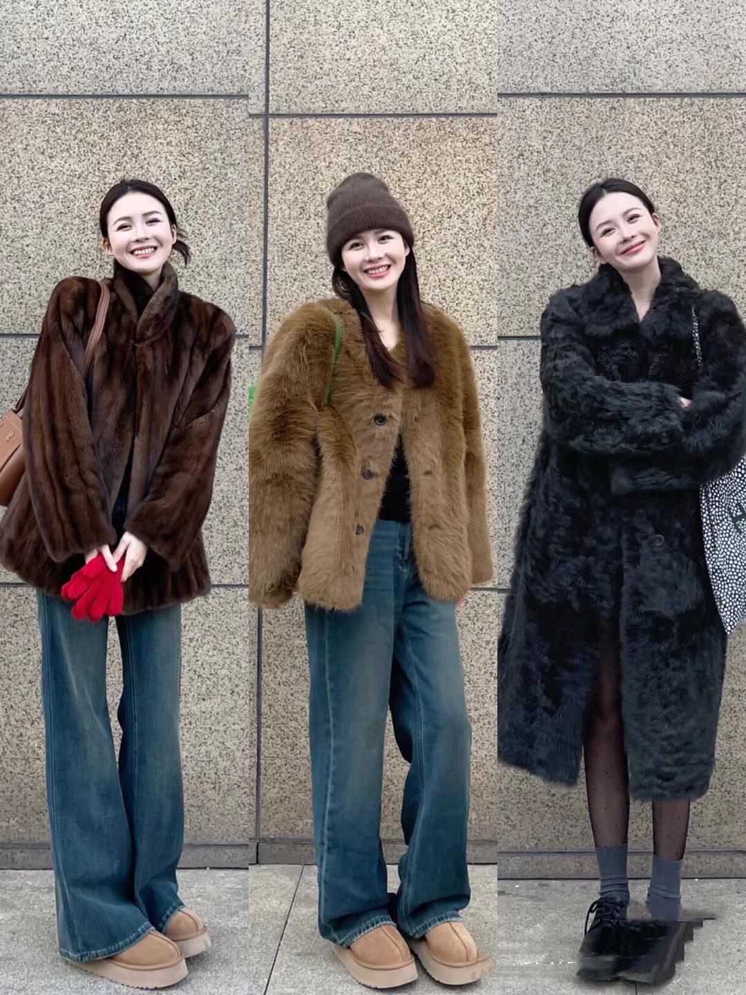 寬鬆一點的皮草外套,可以疊搭修身的打底衫,我們配高腰的直筒牛仔褲、不僅可以修飾腿型,還可以表現出身材的挺拔美。高腰的直筒牛仔褲,稍微寬鬆的版型,包容性也更強。