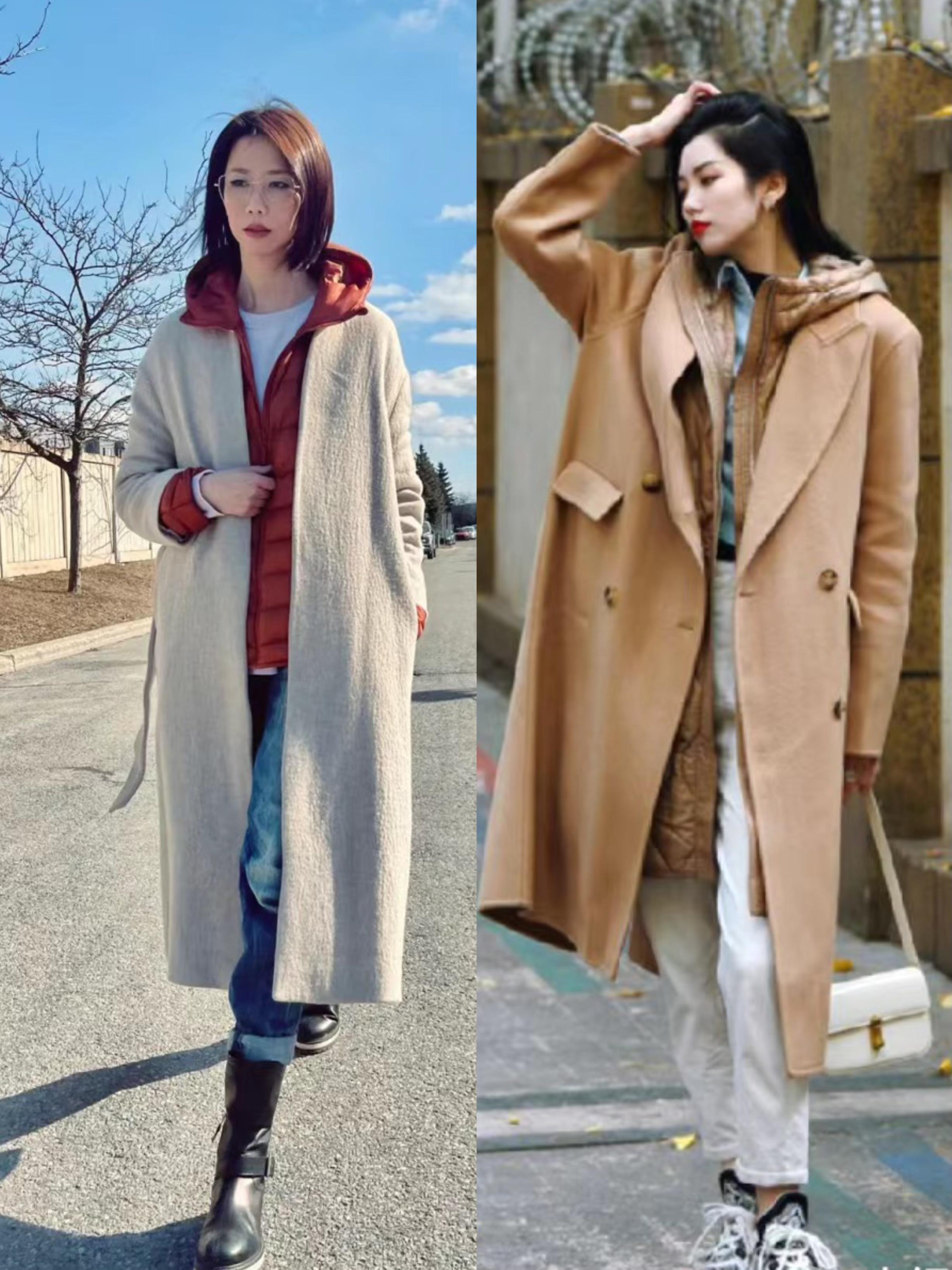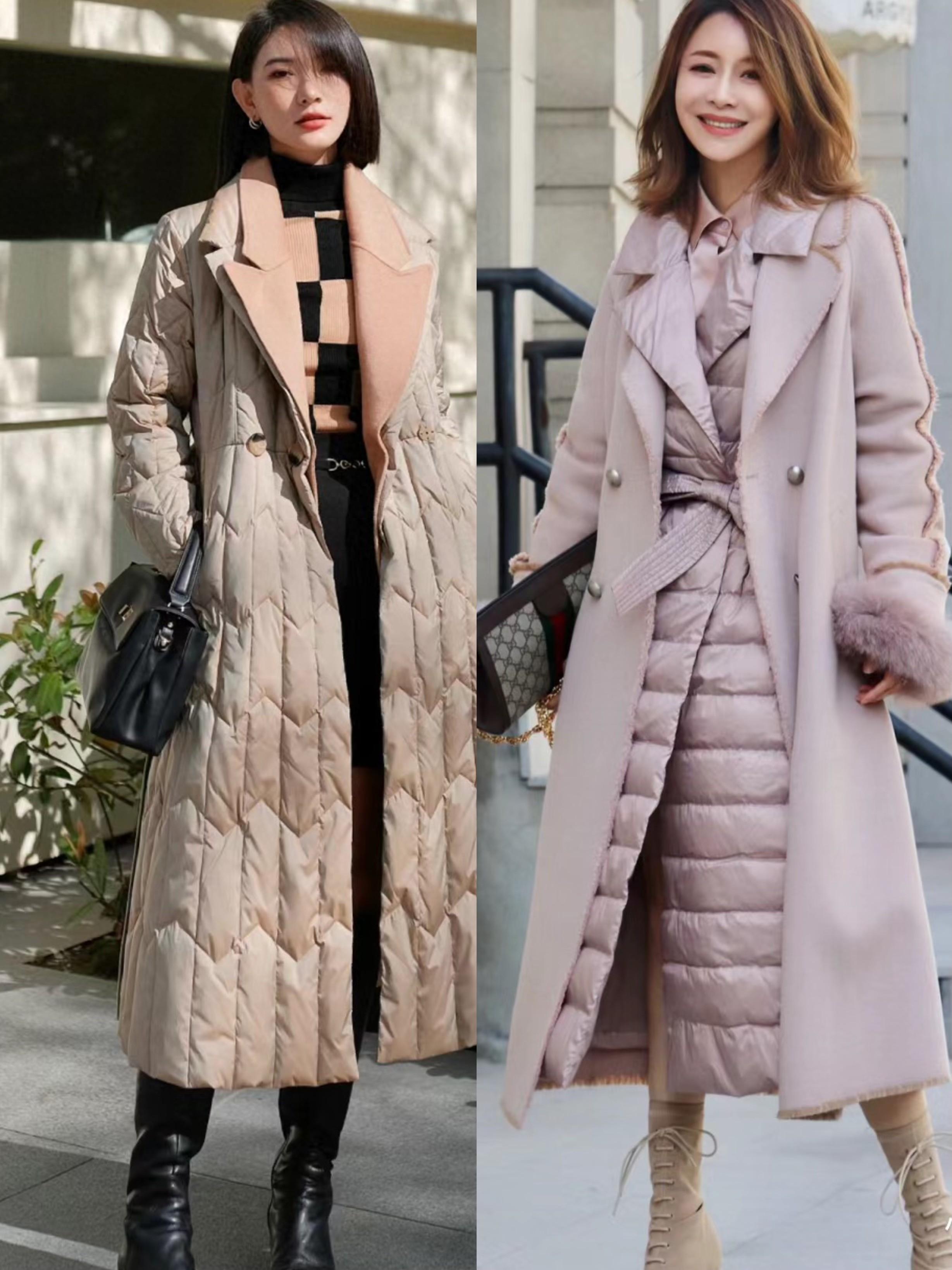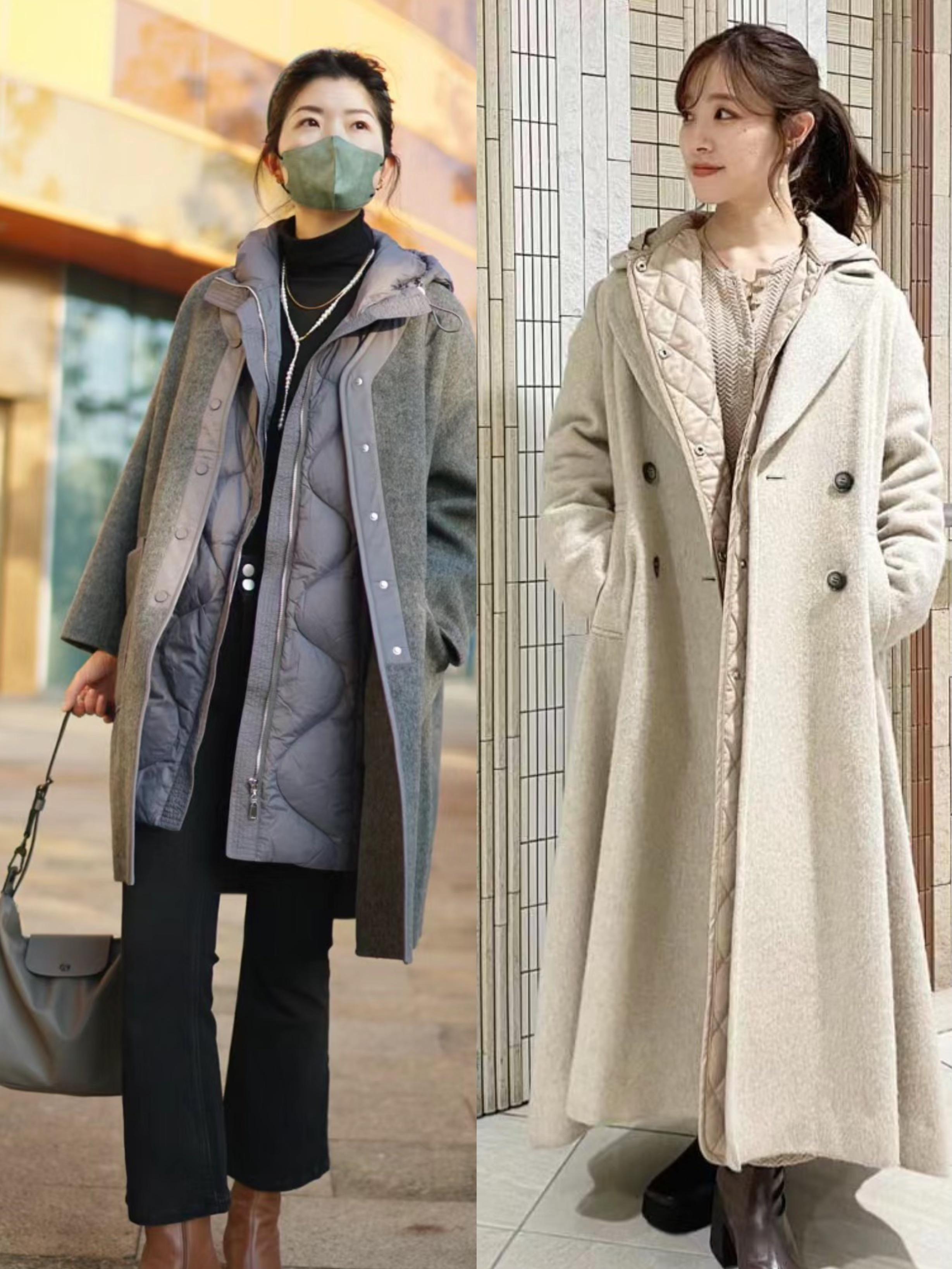 大衣的優雅利落,與羽絨服的蓬鬆保暖,可以形成更完美的互補。尤其是輕薄的羽絨服,更適合作爲內搭,疊穿在大衣內搭、不會產生厚重感、保暖性更強。