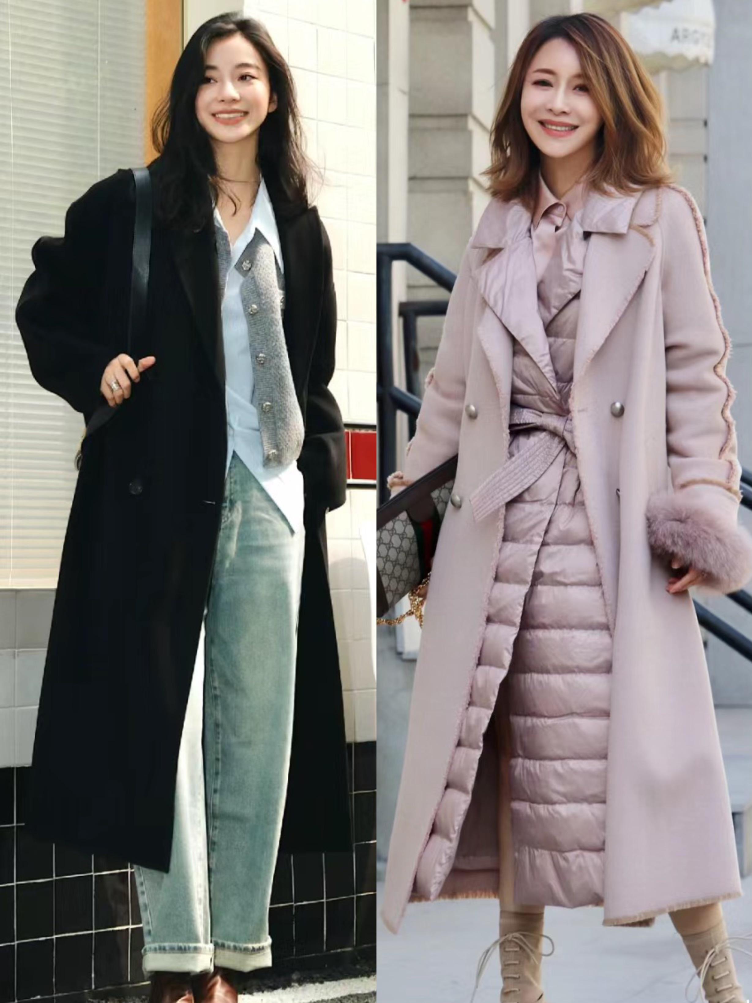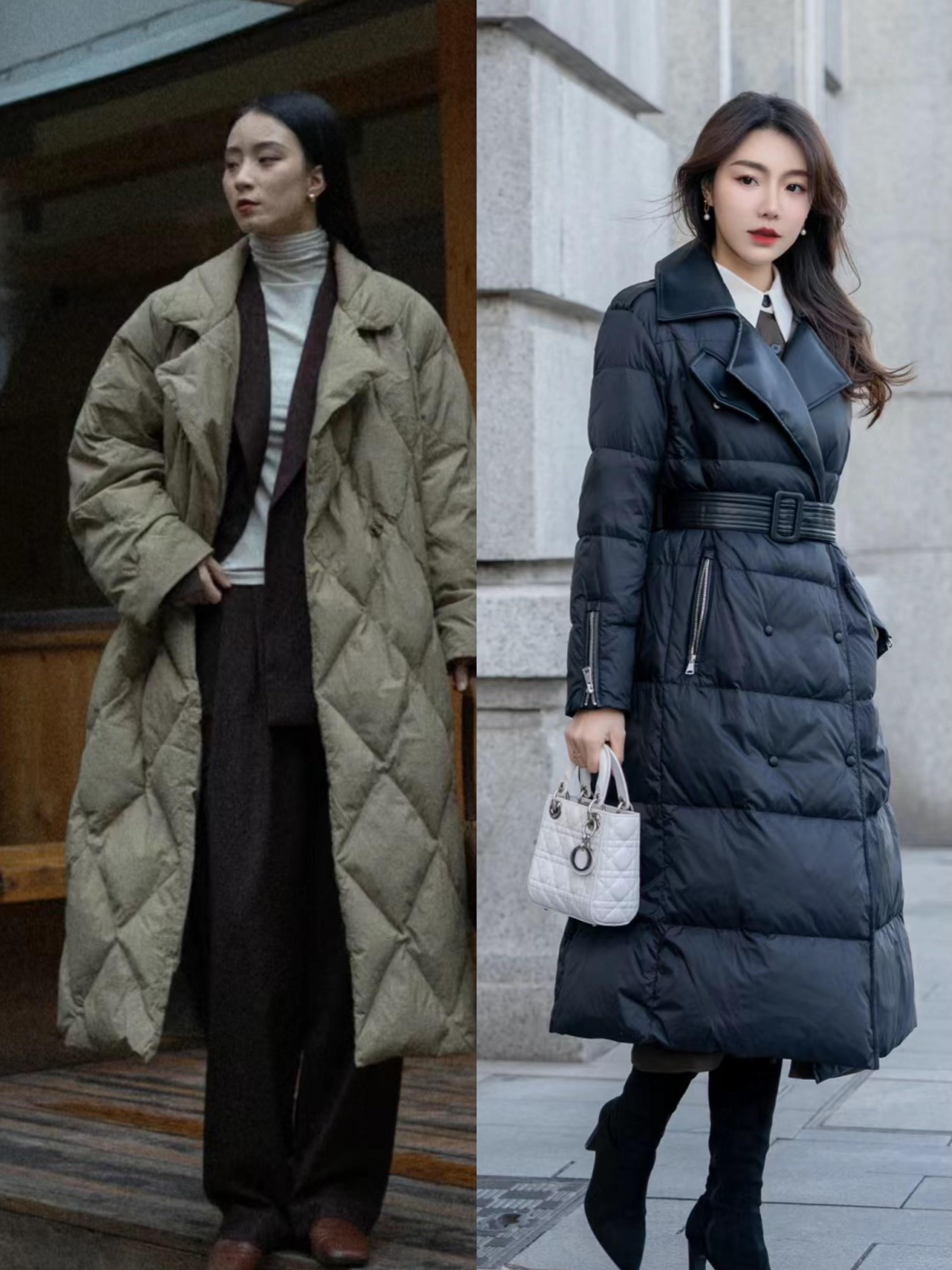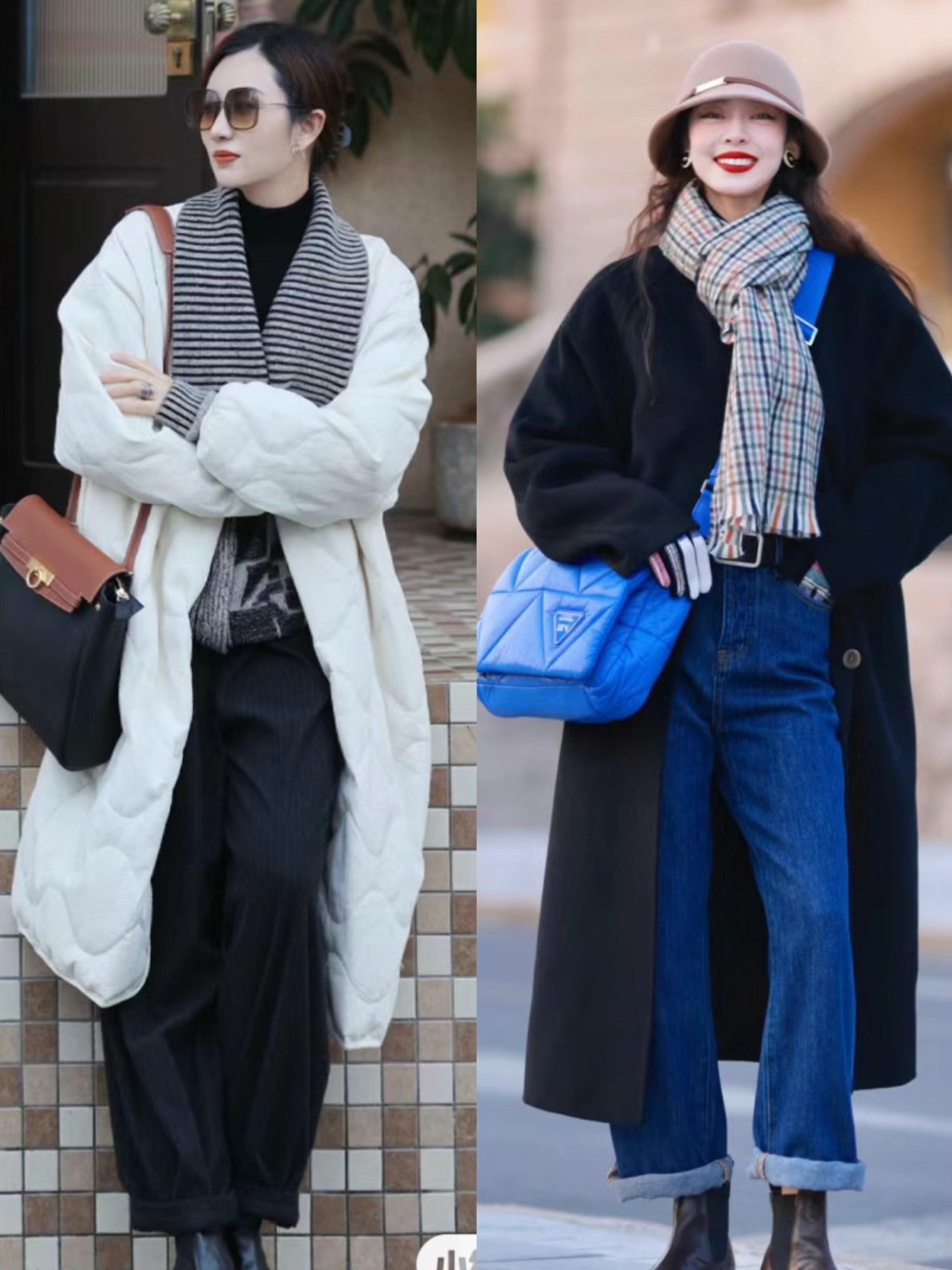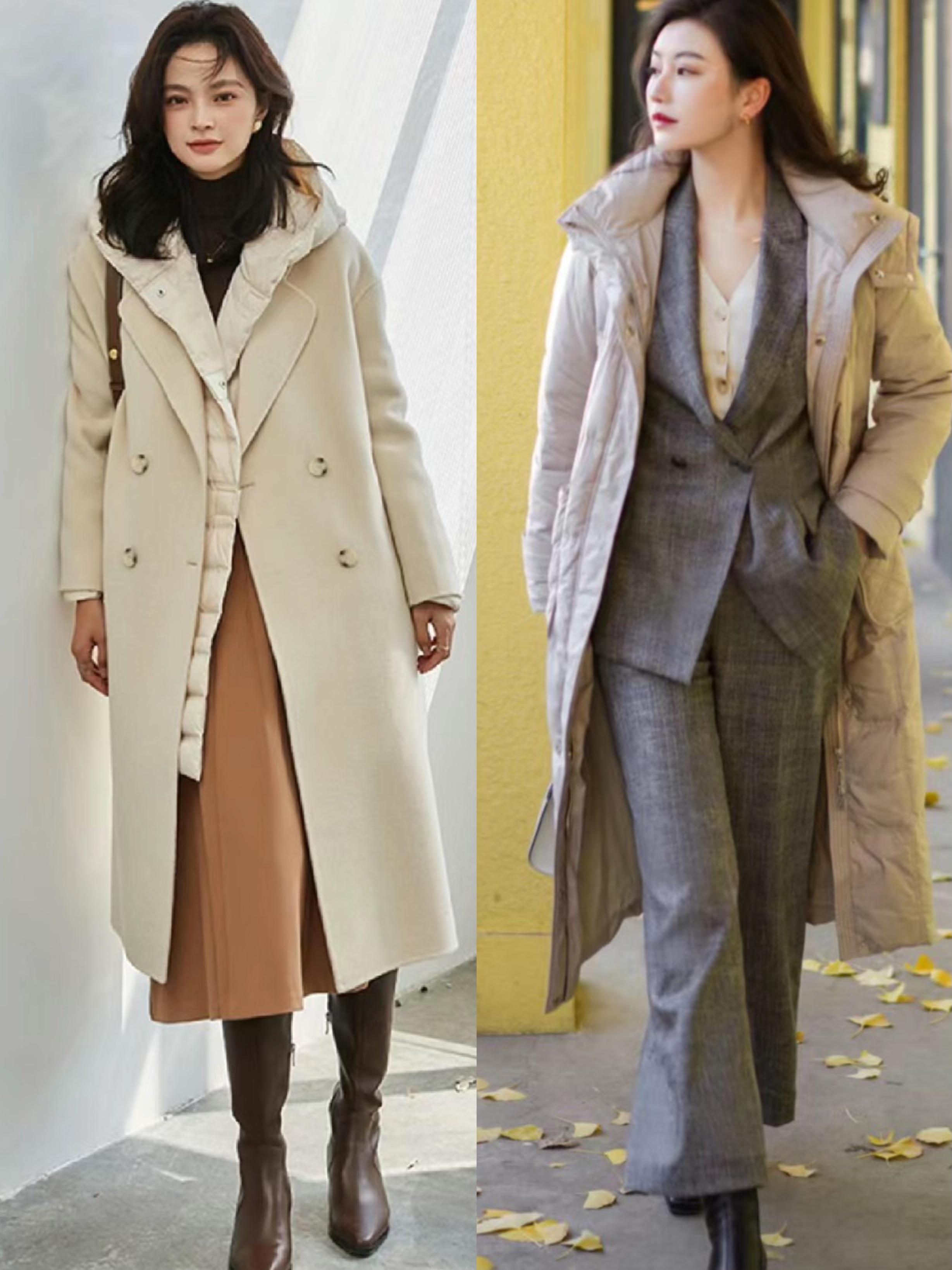 寬鬆羽絨服+修身大衣,溫暖又體面的美
