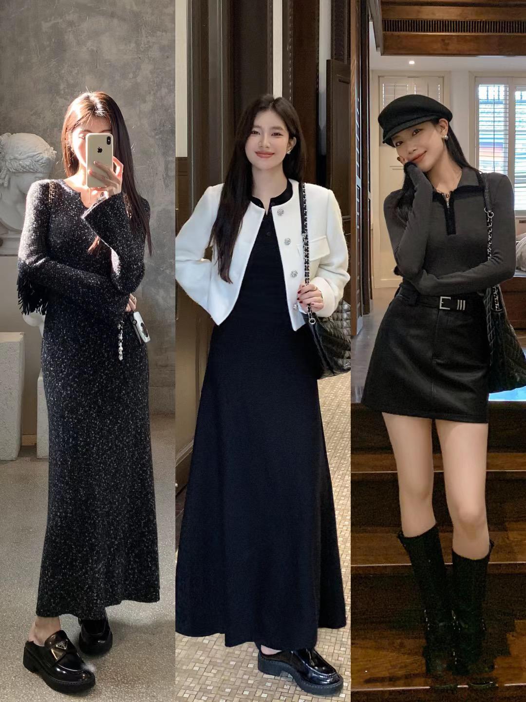 冬天裏的針織連衣裙,或者黑色絲絨連衣裙,都是時髦高級又保暖的單品。年底聚會的時候,穿一條修身的黑色長裙,閃亮登場、必然會驚豔了衆人。