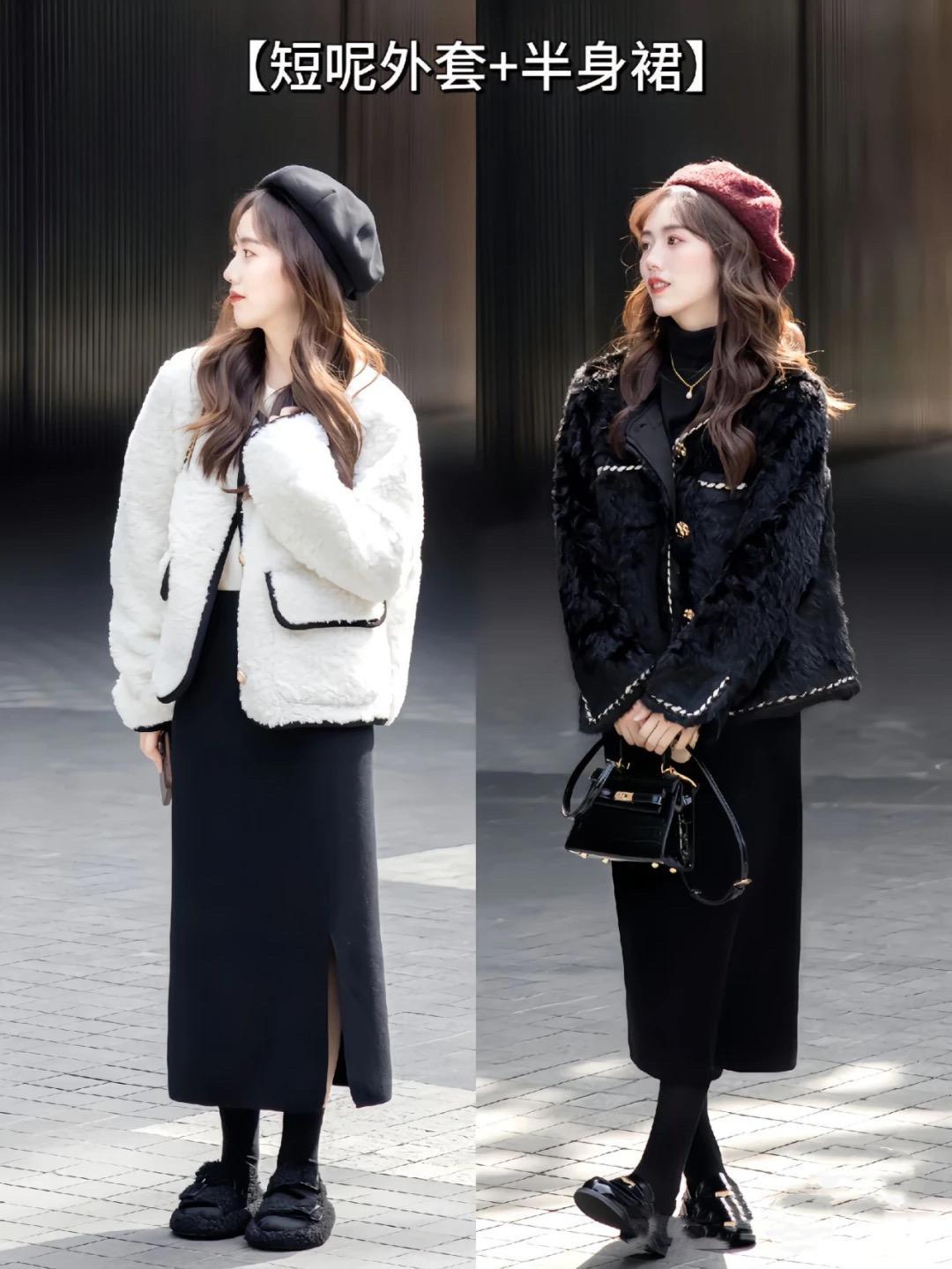 害怕視覺上的臃腫,選擇短款呢外套就對了。精緻的小香風款式,透着富家千金的精緻感,搭配緊身的高腰半身裙,更多了名媛千金的貴氣。