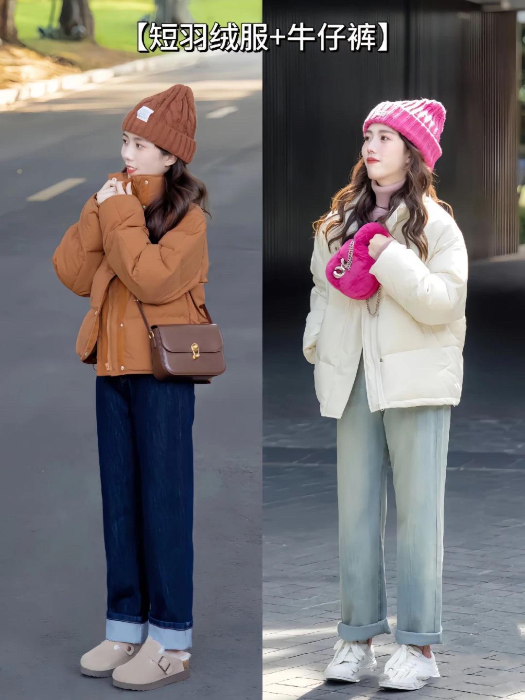 我們用短款的羽絨服來搭配直筒的牛仔褲,筆直挺拔的雙腿線條更自然的勾勒出來。直筒的牛仔褲、可以選擇一種卷邊的款式,利落大方又更加時髦顯高。