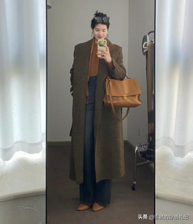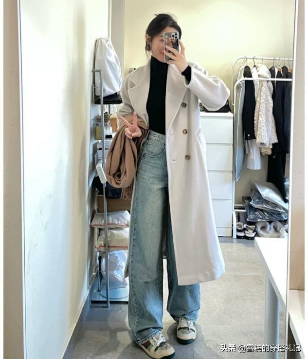 一、穿大衣,可以很清晰的看出配闊腿褲和緊身褲的區別