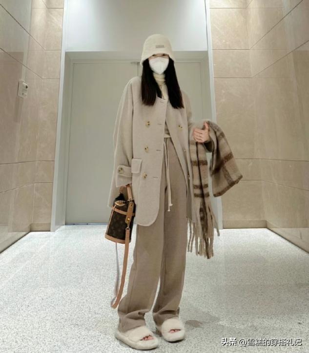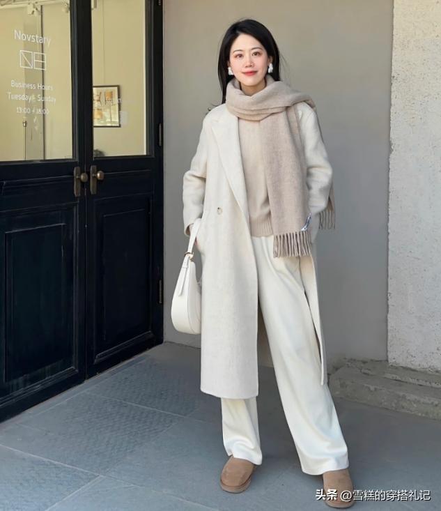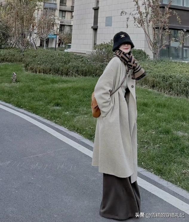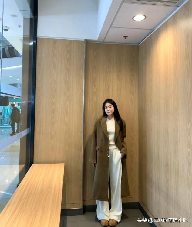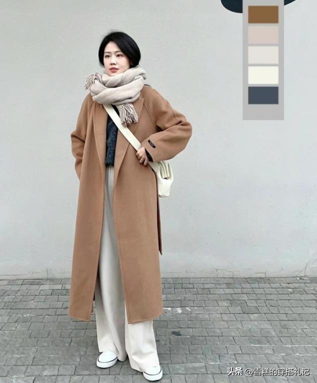 比較推薦的暖色調有米白色,卡其色以及棕色系,這些色系的選擇可以通過深淺的對比,運用在大衣和闊腿褲上,基本不會讓你的身材喫虧。