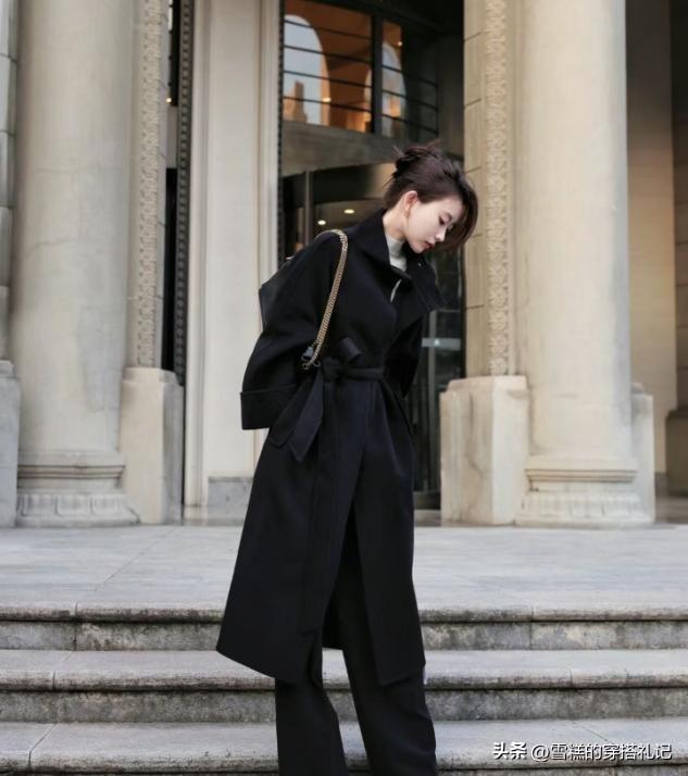 大衣比較實用的款型絕對不是卡腰的設計,順向設計的直筒大衣纔是最修飾身材版型的。考慮到比例的維護感,大衣和褲裝的顏色區分要順着修身感下垂,只運用兩種顏色略帶區分兩類單品就足夠了。