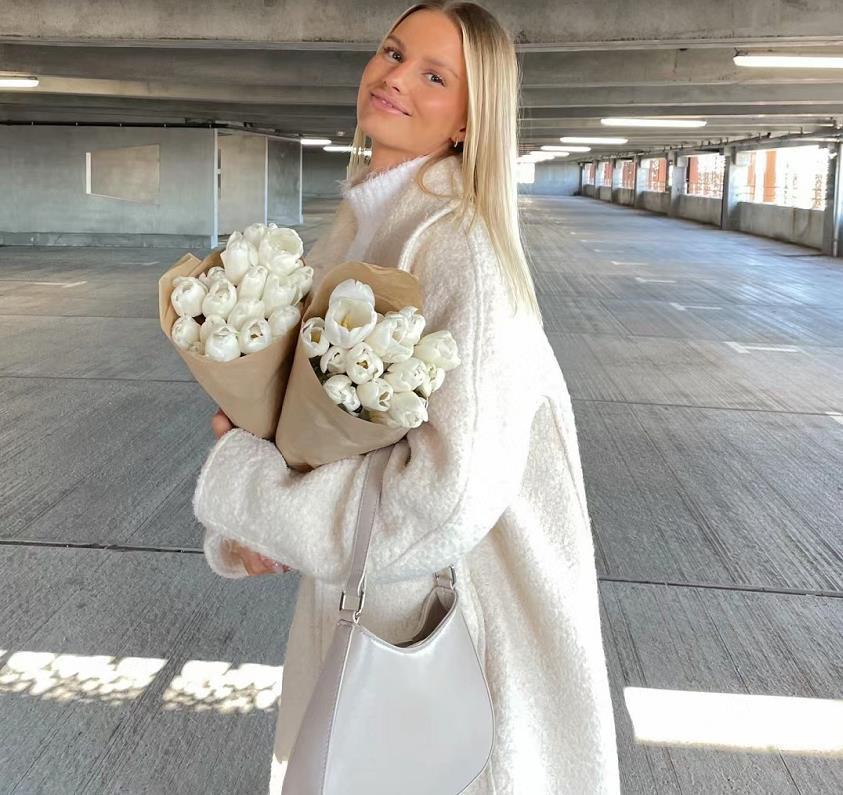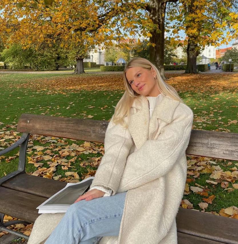白色的穿搭,透着一股極簡高級風,奶白色長大衣+白色毛衣,下身是一條水洗牛仔藍褲子,都是很簡單基礎的款式,組合在一起就是很時髦高級。