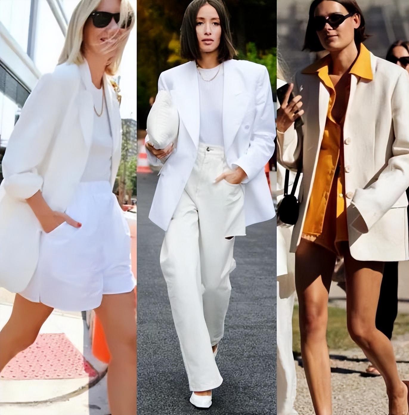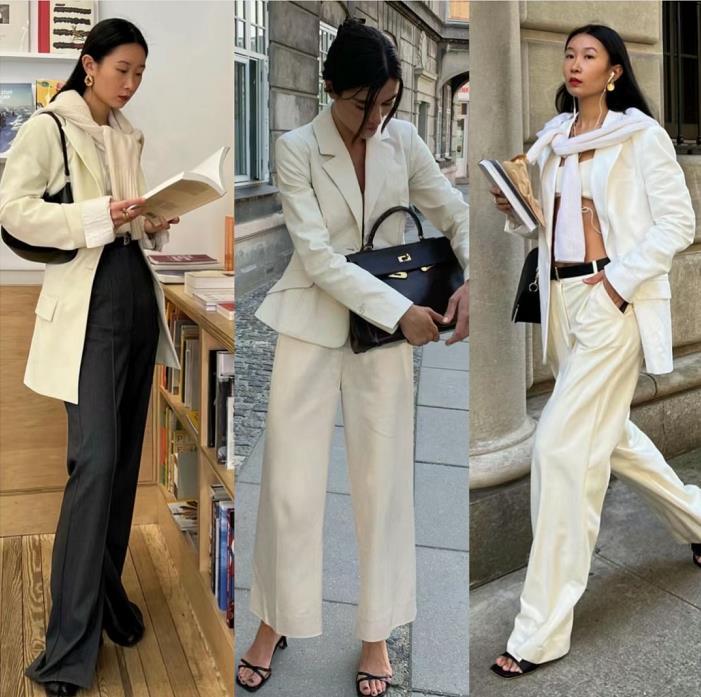 白西裝+休閒西裝褲,真的既適合通勤,又適合日常逛街,記得要多注重下細節感。