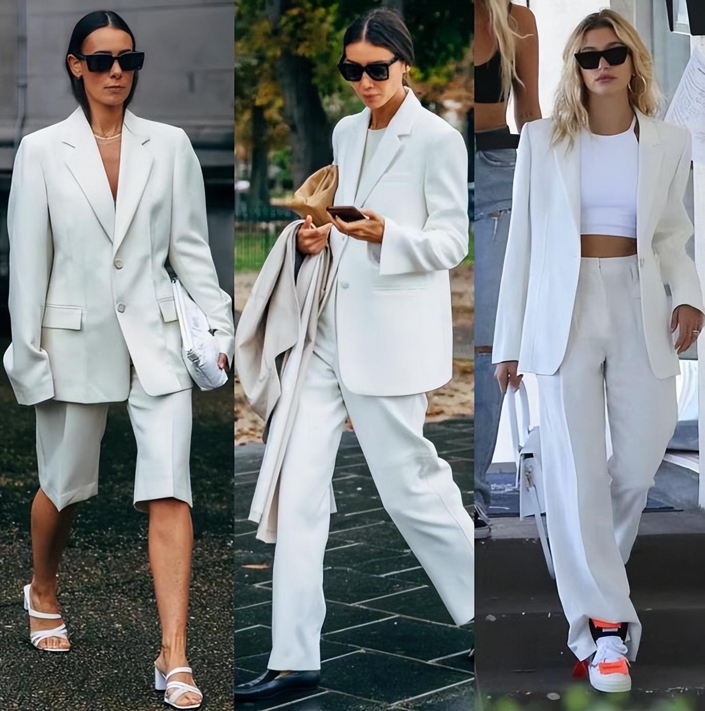在選擇白西裝的時候,記得要注重下版型,寬鬆一些的版型才能穿得更時髦,也能減少傳統西裝帶來的嚴謹和過於正式的既視感。
