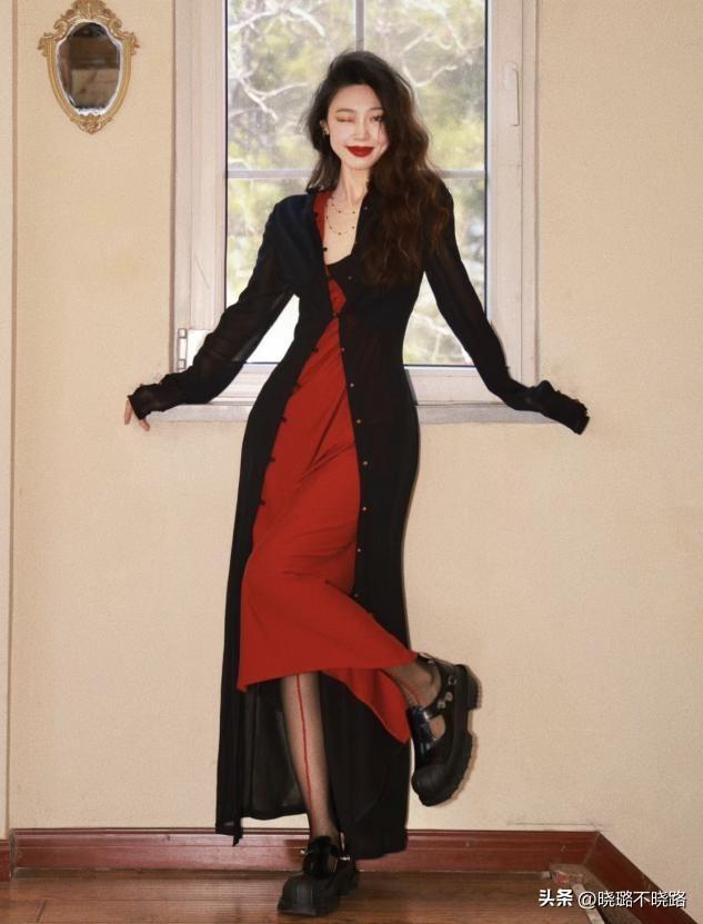 紅黑這兩款單品的搭配就建議大家可以穿的更加具有經典以及穩定感、沉穩感重一些,在選擇疊穿方式的時候,還是要選擇兩者都爲長款的設計,例如上裙裝搭配大衣這樣的版型狀態就非常的具有經典性,而且針對於任何一個年齡階段的女性而言都很有氣質襯托。