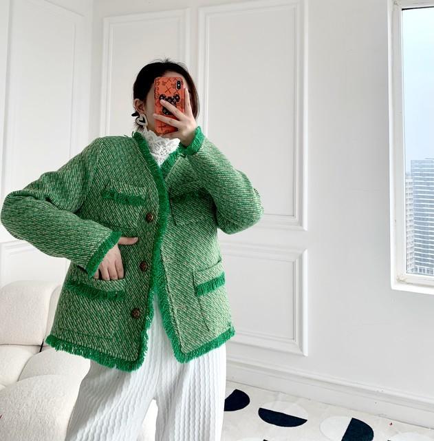 小香風的羊羔毛外套本身也比較難駕馭,穿對了是精緻,穿錯了是土氣。