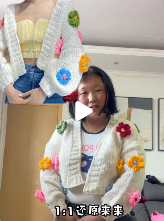 這就是很火的立體毛衣,穿起來真的不是一般的顯胖。