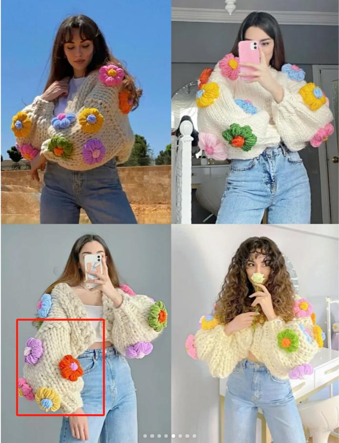 本身這種立體花朵的氛圍營造是需要比較瘦的人穿纔好看,單穿還可以,如果外面套大衣,會顯得胸前非常擁擠的感覺,畫面不太美觀。