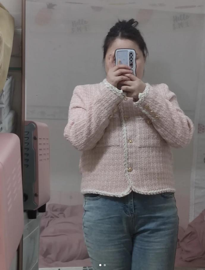 羊羔絨外套前兩年真的很風靡,各種毛茸茸的氛圍感,非常適合冬天,但是這種材質本身就比較膨脹,如果是基礎款版型就還好,附加多餘元素和廓形設計就顯得臃腫了。尤其是這種小香風的短款,怎麼穿都很胖。