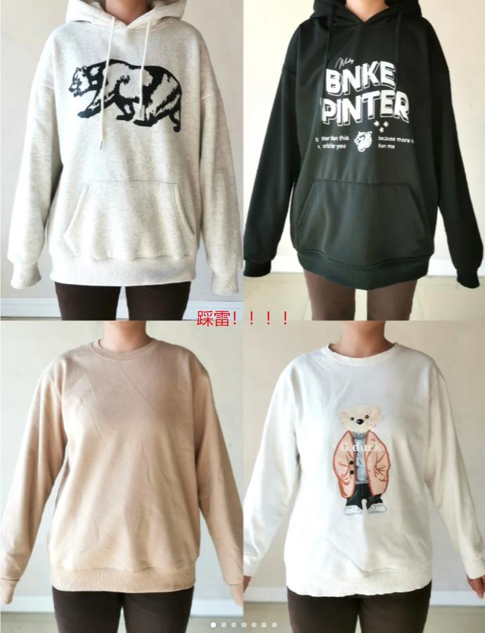 這種廓形直筒的加絨衛衣,真的很尷尬,衣長到屁股的位置,營造下衣失蹤的感覺,但是上半身非常顯胖,如果還穿上羽絨服,就秒變臃腫的災難現場。