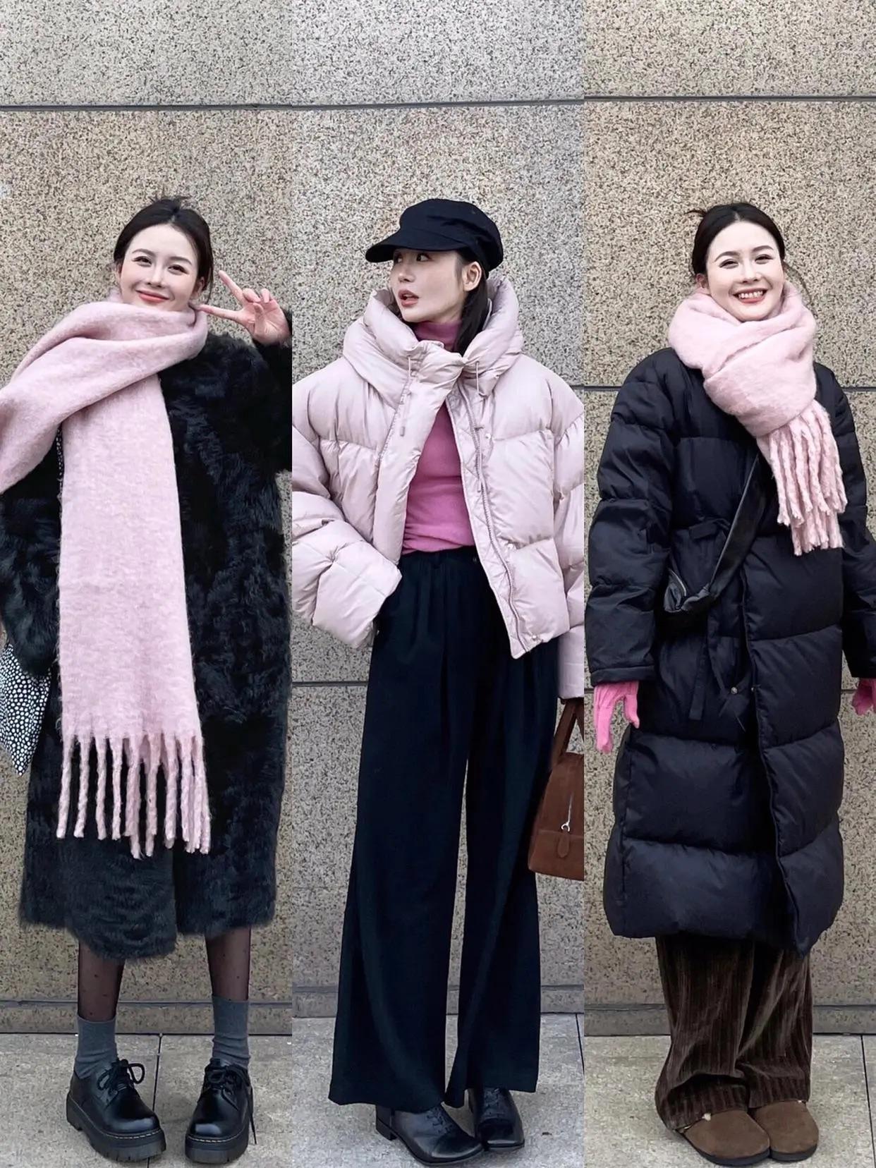 冬天裏爲了避免沉悶感,我們還可以搭配紅色圍巾。紅色圍巾的融入,不僅更加洋氣顯白、保暖效果也不錯。同時紅色圍巾優化了頭身比,顯得穿着者身材更加高挑。