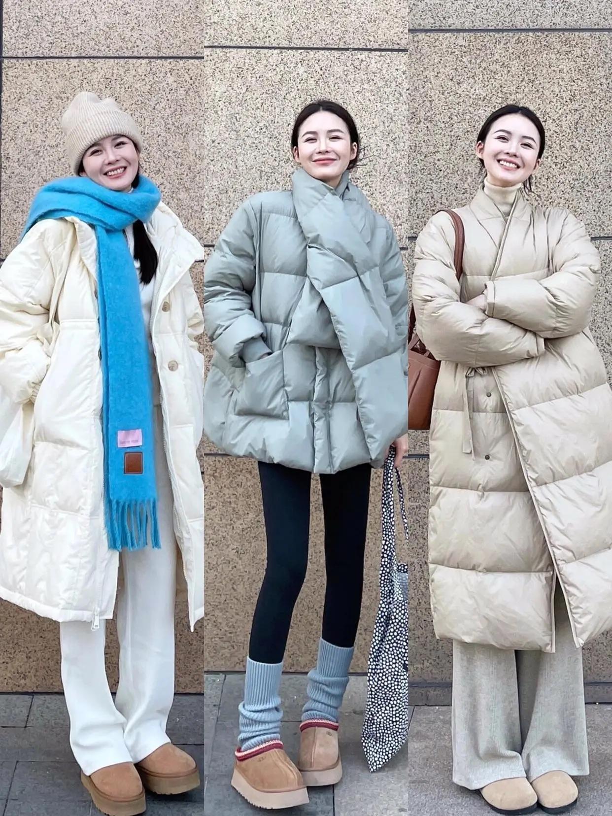 不管是棉服還是羽絨服,我們都可以選擇純色系淨版的設計。米白色、香檳色、藍灰色都很雅緻大方,褲裝的話也可以選擇經典的黑白灰,或者大地色、燕麥色等柔和的色彩。