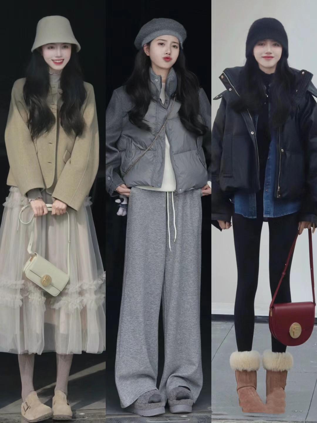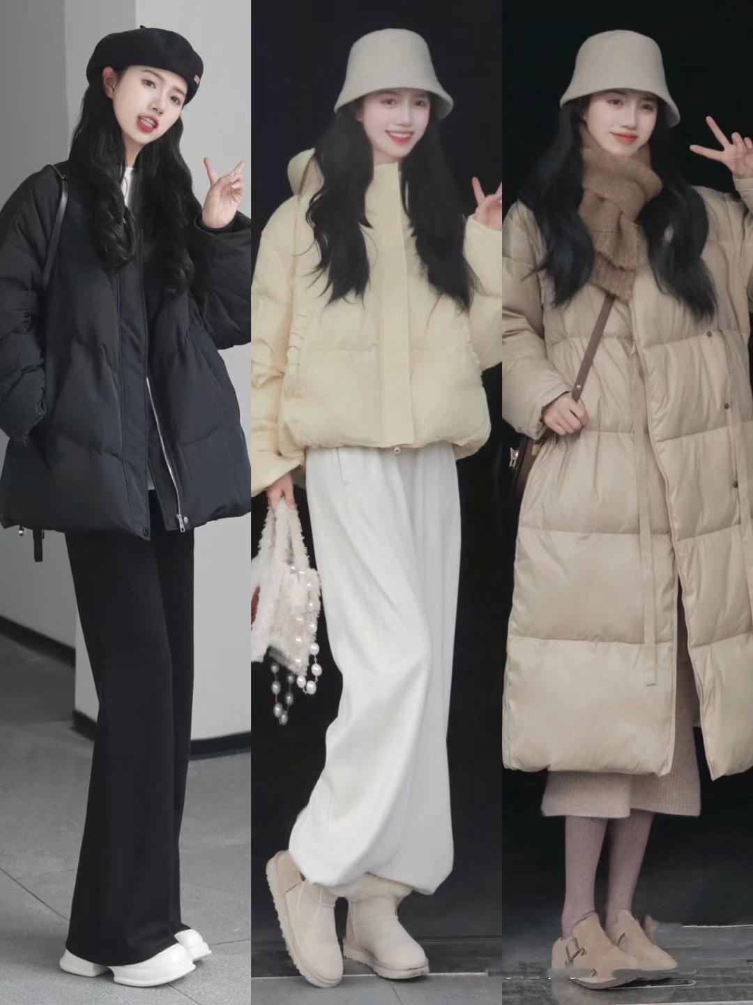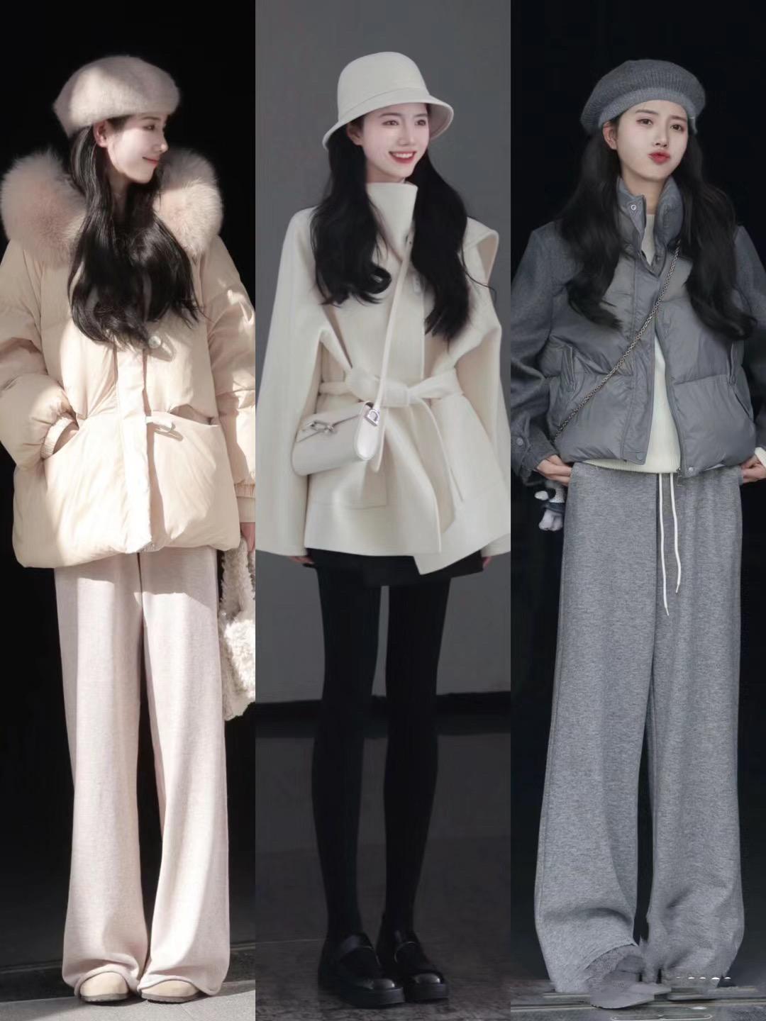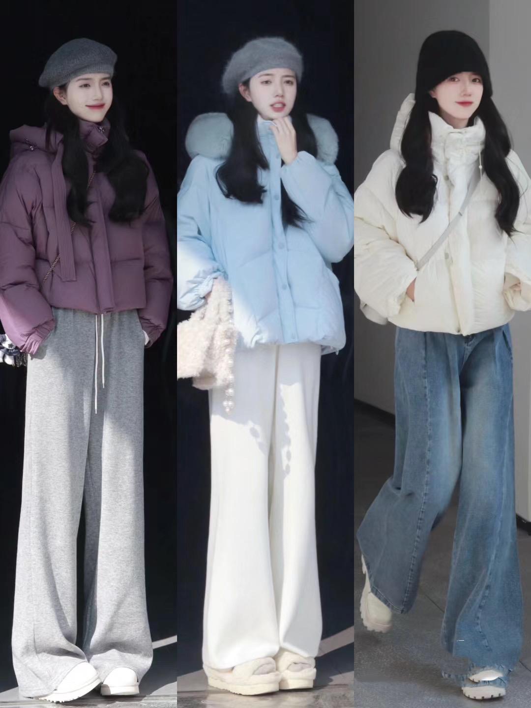 短款羽絨服+加絨闊腿褲的搭配,舒適自在又特別的保暖。一條高腰的加絨闊腿褲,可以選擇稍微寬鬆的褲筒,包容性更強、又垂墜顯腿長。