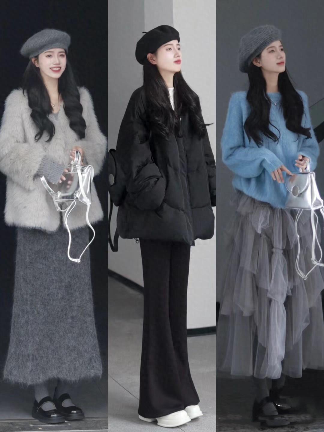 想要中年少女的氛圍,就可以利用配飾來弱化年齡感。比如精緻小巧的挎包、修飾頭型和臉型的貝雷帽、以及厚底的小皮鞋,都是提升冬季穿衣氛圍的關鍵。