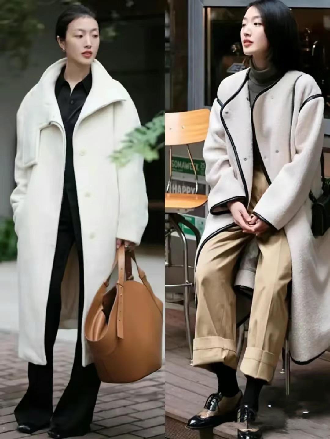 大衣+長褲的組合,在冬天裏也是非常實穿的組合。日常休閒不知道穿什麼的時候,就穿一件毛絨質感的大衣,可以搭配經典的黑色長褲、也可以搭配復古風的卡其色長褲。