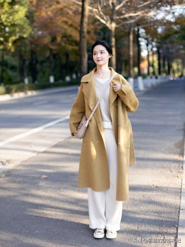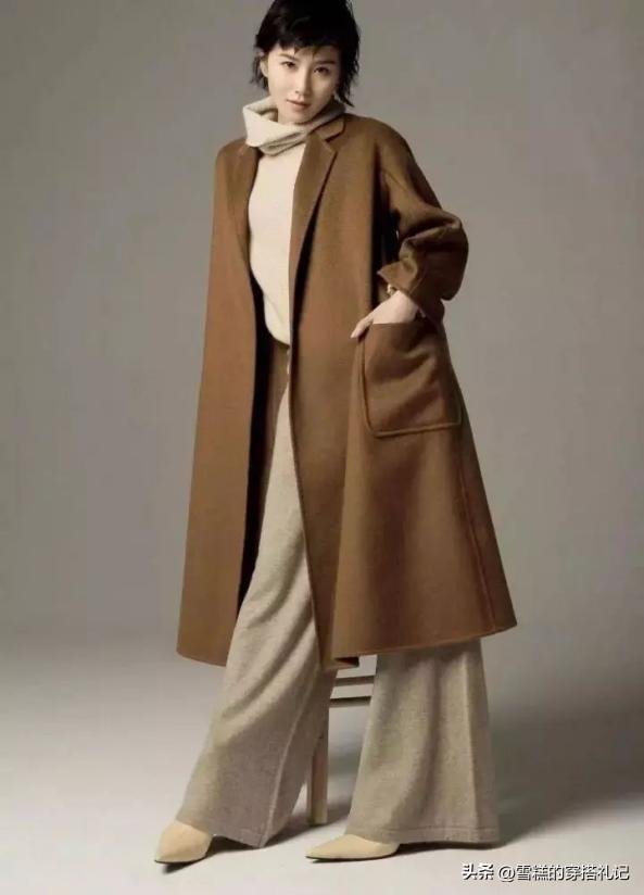 公式一:中性色毛衣和闊腿褲+美拉德大衣