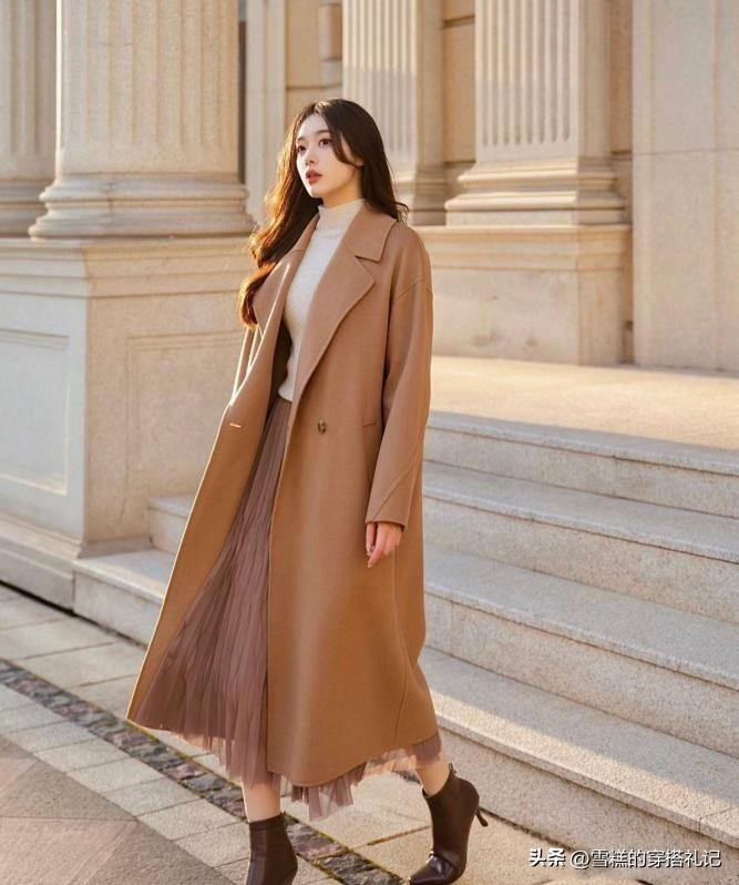 美拉德大衣的設計以其大翻領和繫帶細節爲亮點,能夠增加一種優雅和奢華感。與個性的裙裝相結合,例如俏皮的短裙或者是柔美的網紗裙,既凸顯了大衣的精緻設計,又展示了裙裝的時髦和品味。這種搭配的優勢在於它能夠突出比例感,強調身形的優勢,並營造出優雅又得體的氛圍。