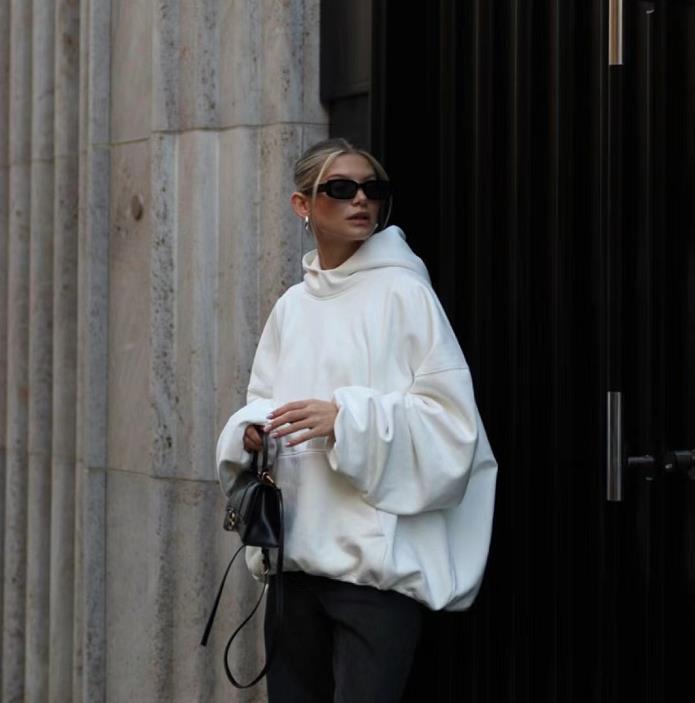 超級好穿的白色衛衣,微胖女生也可以輕鬆駕馭,寬大的版型,除了帶來鬆弛感之外,更多的是顯瘦和藏肉。