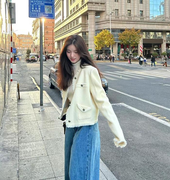 千金的既視感,這一套南方的姐妹在春天穿正合適,簡直長在我審美上了,簡單的白色小香風外套,搭配牛仔褲,是溫柔的千金歐尼,很難不愛。