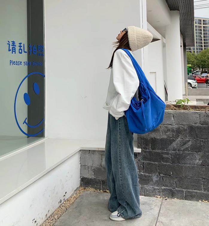 來自衛衣和拖地牛仔褲的慵懶組合,白色+牛仔藍,這兩種顏色搭配一起也太清爽乾淨了吧?